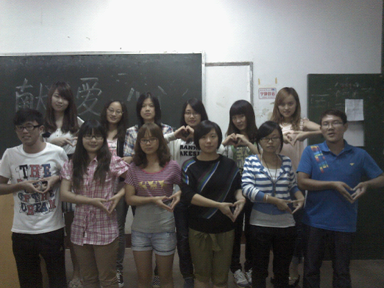 其次在这次活动中,大家还自发的学习了爱的奉献的手语,每位同学都诚心诚意的学着每个动作,尽管动作多,困难大,但大家还是认认真真的学着,将其当作一项伟大的任务来完成。事后大家都进行了留影纪念,也希望更多的同学能够看到,伸出援助之手。