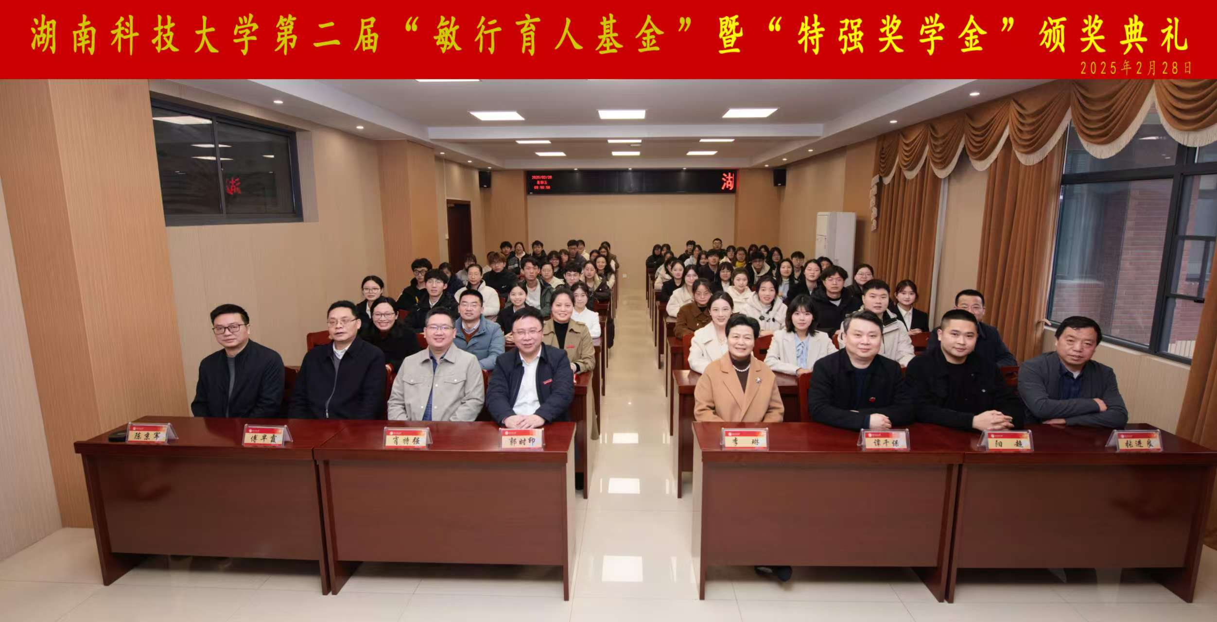 2月28日,第二届“敏行育人基金”暨“特强奖学金”颁奖典礼在敏行楼A333举行。校党委委员、纪委书记郭时印,原校党委委员、副校长李琳出席。校友代表、百应科技有限公司总裁肖特强,获奖代表、学院领导、师生代表参加。典礼由bevictor伟德官网党委副书记文红梅主持。