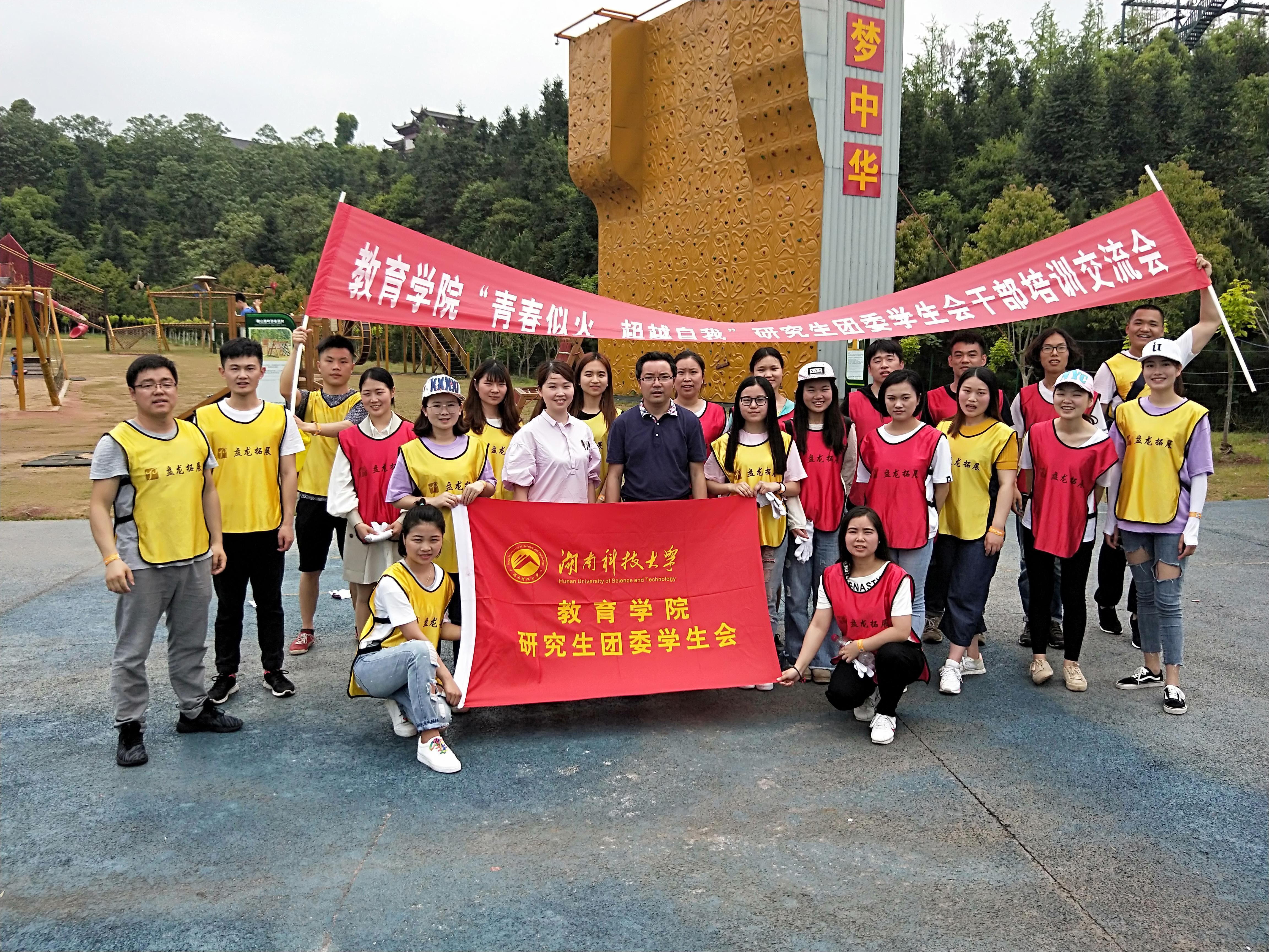 2018年4月22日,bevictor伟德官网以”青春似火、超越自我”为主题的研究生团委学生会干部素质拓展活动在湘潭市盘龙大观园素质拓展基地举行。bevictor伟德官网领导、研究生辅导员、研究生秘书、研究生团委学生会干部和教育硕士各方向负责人共20余人参加了此次干部培训活动。此次活动旨在增强学生干部之间的团队协作能力和身体素质,促进干部与老师的沟通交流,培养团队精神和协作意识。