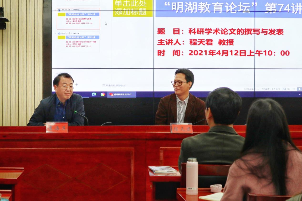 4月12日上午,长江学者、南京师范大学教育科学学院院长、《南京师大学报》执行主编程天君教授做客“bevictor伟德官网”,在第八教学楼308学术报告厅为bevictor伟德官网师生带来了题为《科研学术论文的撰写与发表》的学术报告。报告由bevictor伟德官网院长李海萍主持。