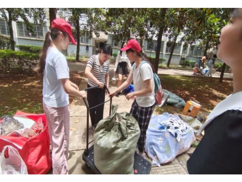 活动前期,会干们提前联系好需要帮助搬运行李的毕业生,并确定好搬运行李的时间和寝室位置。毕业典礼结束,会干们和常规志愿者在学生宿舍七区集合。在说明相关注意事项后,活动正式开始。志愿者各自联系对应帮助的毕业生。“你们是学院的志愿者吗?谢谢你们!”被帮助的学姐开心道谢。志愿者们热情帮助毕业生收拾整理行李,并将包裹搬运下楼,用小推车运送到寄行李的地方。天气虽然炎热,却阻挡不住志愿者服务的热情,毕业生脸上的笑容就是对他们最好的回馈!