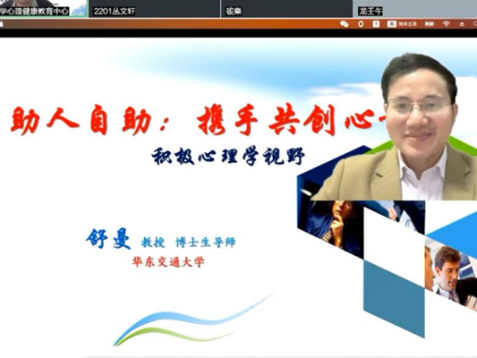 为帮助大学生树立积极心态,10月10日,bevictor伟德官网组织全体师生线上观看了“助人自助:携手共创心幸福”主题讲座。本次讲座由湖南省高校思想政治教育研究会学生心理健康教育专业委员会主办,博士生导师舒曼担任主讲嘉宾,湖南工程职院教师何炎芬担任主持人。