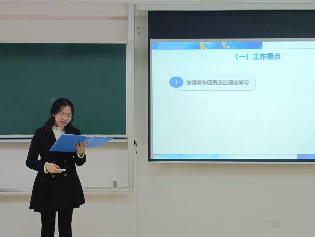 团委学生第一副书记王泽钦从本学期的工作亮点谈起,对过去一年在政治引领、组织改革、服务同学、校园活动等方面的工作进行了深入的总结,同时她也指出了工作中存在的不足之处,例如要加强学生干部队伍建设,提高宣传科技活动创新能力,以及要因时而异推动特色活动的开展等。她表示在就职期间,自身的工作能力和综合素质都得到了极大的锻炼和提升。