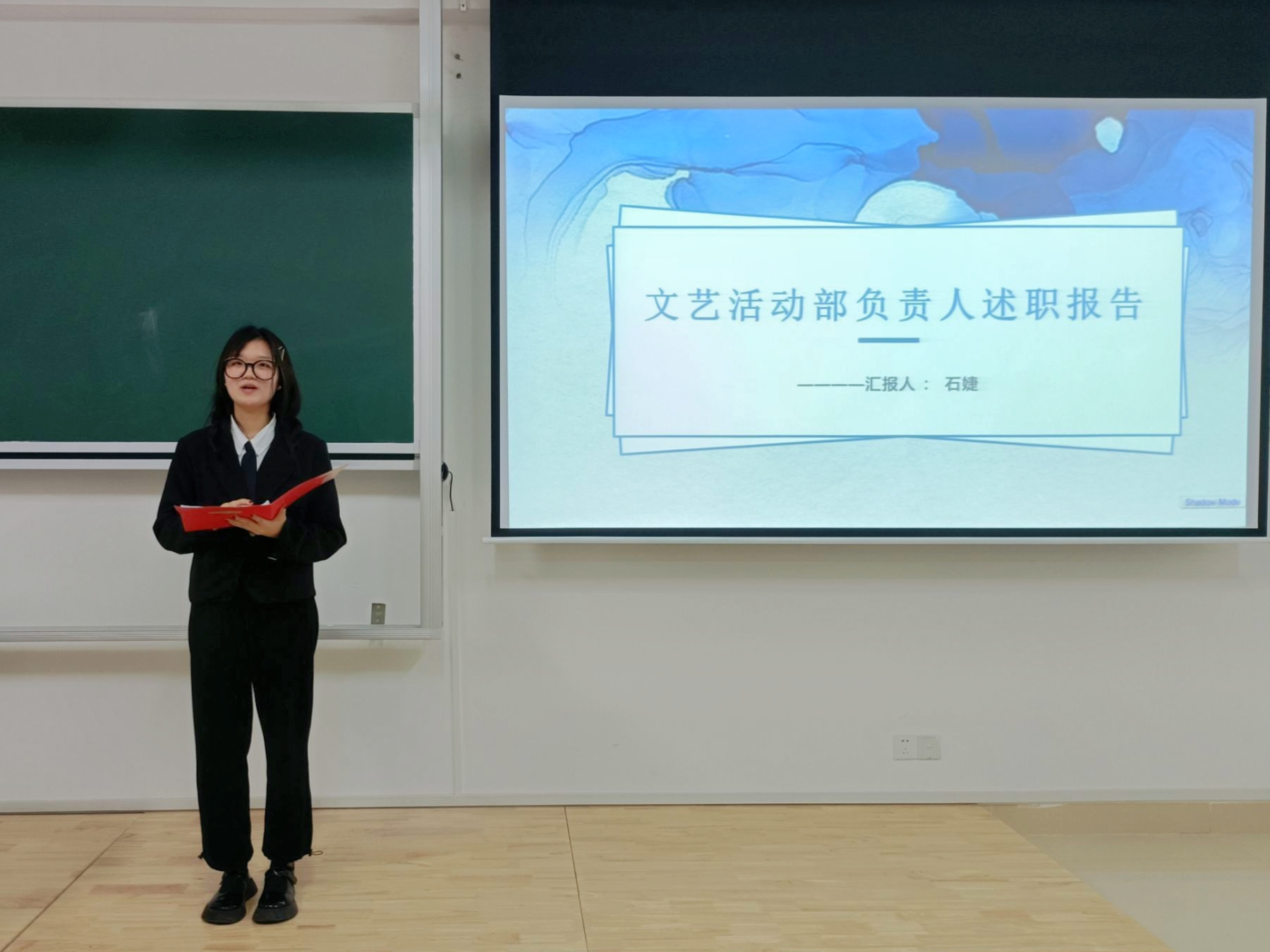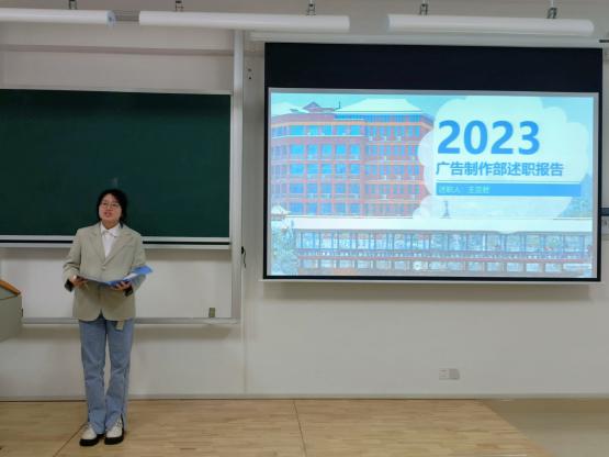 团委学生会主席团成员和各部门部长依次上台述职。文艺活动部部长石婕着重呈现了部门的工作成果,从计划、安排、执行等方面都体现着部门良好的团结协作能力和轻松愉快的工作氛围。广告制作部部长王亚君深刻地剖析了部门现存的不足,例如部门特色活动少、宣传力度不够导致同学们对部门了解甚微等,并详细提出了接下来的工作部署。主席团成员及各部门部长分别阐述了各自本学期的工作开展情况、工作亮点、不足之处以及未来展望,并对本学期以来在团队建设、服务同学、助力学院工作等方面做了深度剖析,充分展现了各部门组织的活力与创造力。