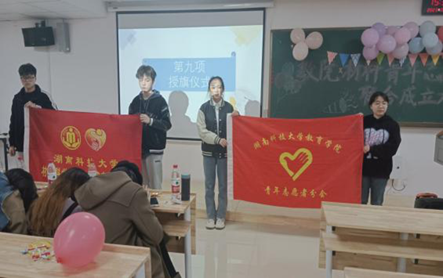 会议期间,两分会表演人员热情洋溢,倾情演绎,一个个精彩节目陆续呈现在观众眼前。大会全程处于热闹欢愉的氛围中。 在庄严的会旗交接仪式上,两院前任分会长分别将那面满载着爱心与责任的会旗郑重地交到现任分会长手中。随后,两院现任分会长分别上台发言,他们表示将带领新一届会干继续不忘初心,砥砺前行,在志愿的舞台上再创佳绩!最后,两学院志愿者代表带领所有参会志愿者庄严宣誓:“尽己所能,不计报酬,帮助他人,服务社会……”大会就此落下帷幕。