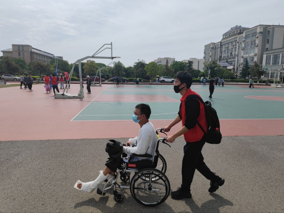 针对行动不便的同学,由志愿者刁英超全程陪同,以协助其完成核酸检测。bevictor伟德官网领导也来到同学身旁送来亲切问候,充分展现了bevictor伟德官网大家庭的温暖。