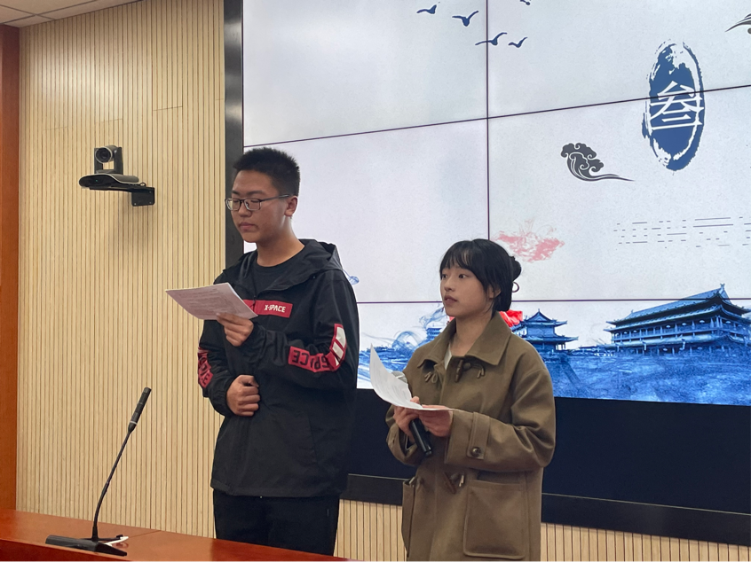 会议之初,主持人王鑫阳和许研丹致开场词,并相继介绍到场嘉宾。随后田玺如介绍青马工程培养目标:缅怀先烈丰功伟绩,培养新一代“有理想、有本领、有担当”的优秀青年,展现时代青年风貌,为我国社会主义建设事业贡献力量。