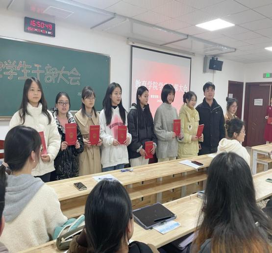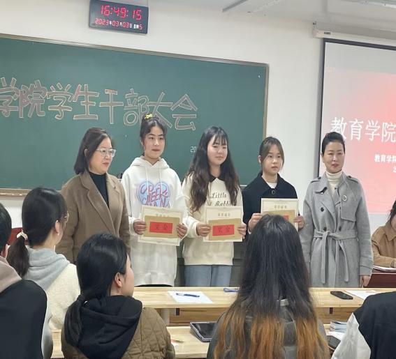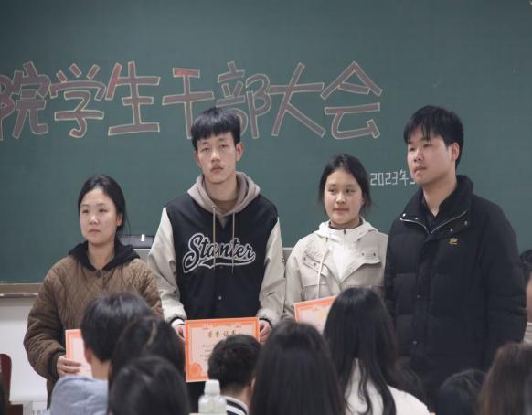 会议特别安排了优秀学生干部进行经验分享。他们结合自身的学生干部经验分享心得感悟,号召全体学生干部进一步提升沟通与交流的能力,具备责任感和服务心,端正工作态度、提高工作效能。随后,进行优秀班级、运动员和国家励志奖学金获得者的颁奖仪式,刘婕、罗江林、欧树宏、胡银华为获奖者颁发证书。