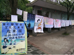 成果展上的展览品琳琅满目,有惟妙惟肖的手工花,有极具创意的火箭模型,有别出心裁的房子以及多姿多彩的剪纸作品,正所谓“只有你想不到,没有他们办不到”。这些都是多少15级新生绞尽脑汁,花费好几个日夜才得以呈现在众人面前的成果,作品虽小,意义深重。内容丰富的摄影作品在树与树之间的绳索上随风摇曳,向路人展示着它们所记录下的美好的点点滴滴。校园里任意一处的草木、任意一栋建筑都在静静地展示它们的美丽,照片将它们的美定格,将那一瞬的美留住。不少路过的学子驻足欣赏,似乎从作品中勾起了对往事的回忆。“教育宿和谐,青春正能量”、“花样年华”、“宿造青春”等主题的手抄报“牵”成一道长廊,在街边格外引人注目。学生们认真地观察着手抄报,对各个作品作出评点。纪检宿管部的成员也用他们如火的热情向过路学生们一一解说着,“每一幅手抄报的背后都住着一群青春洋溢的学子,她们用她们的真心写下了对宿舍成员的祝福,以及对自己的期盼”。书法比赛展出的作品虽少,但必属佳品。以篆书形式的书法令人眼前一亮,惹得他人赞叹不已。