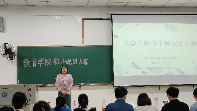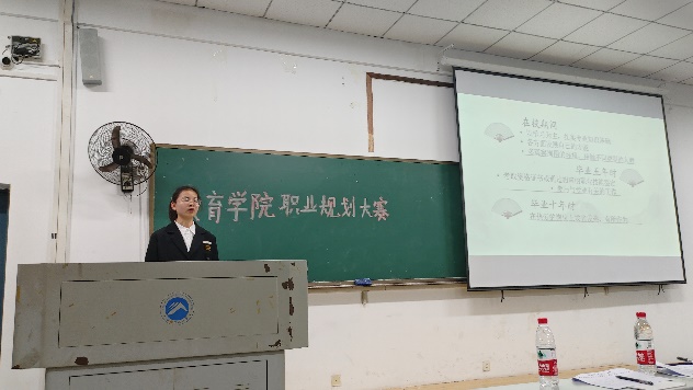 大赛在主持人的开场白里拉开了序幕,选手们精心准备,依次按照抽签顺序上台结合PPT进行演讲,他们对自我认识和职业环境进行了全面分析,并依次阐述了自己的职业目标,职业认识,发展路径,具体计划和实施方案以及评估和备选,做到了从多方面、多角度综合考虑。台上选手激情满怀,自信从容地规划着自己的未来蓝图;台下观众热血沸腾,不由憧憬着自己的美好未来,掌声雷动。