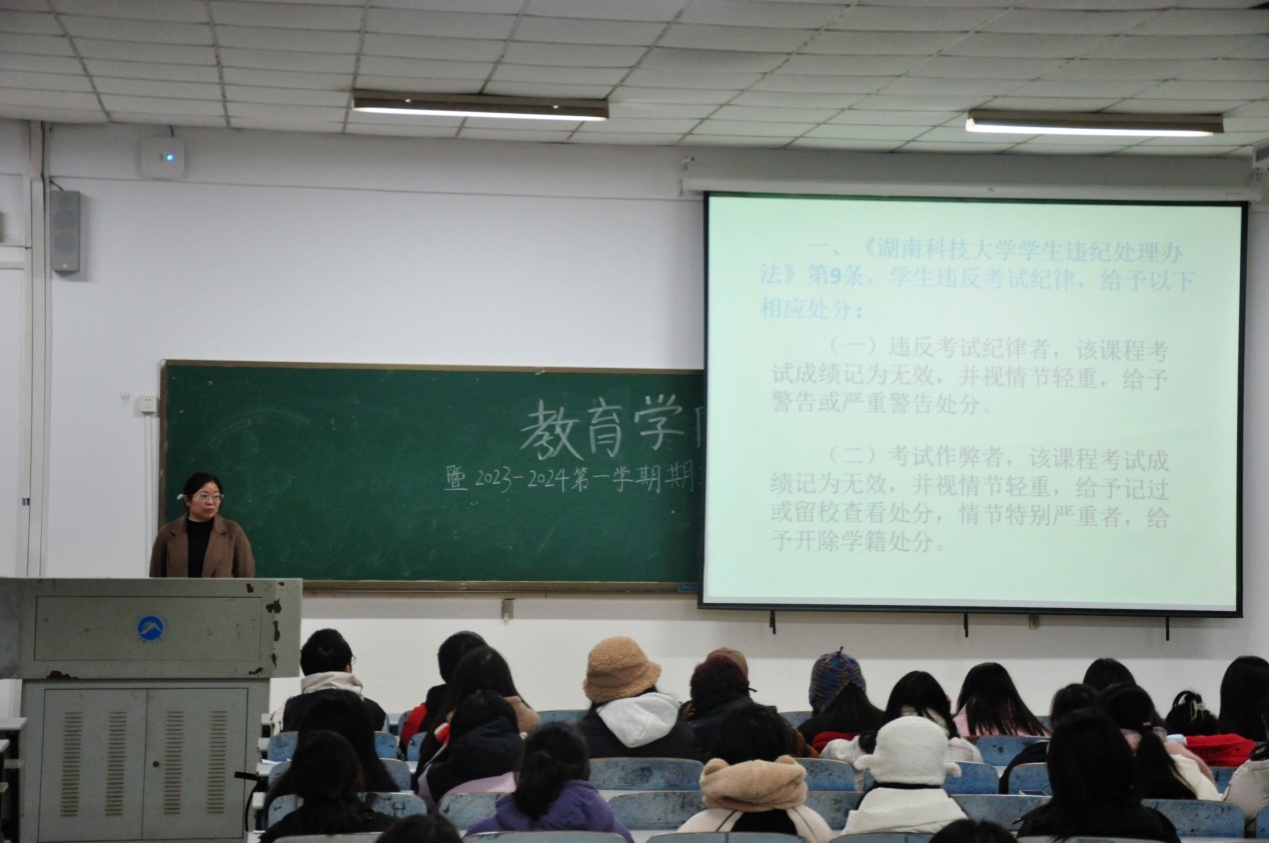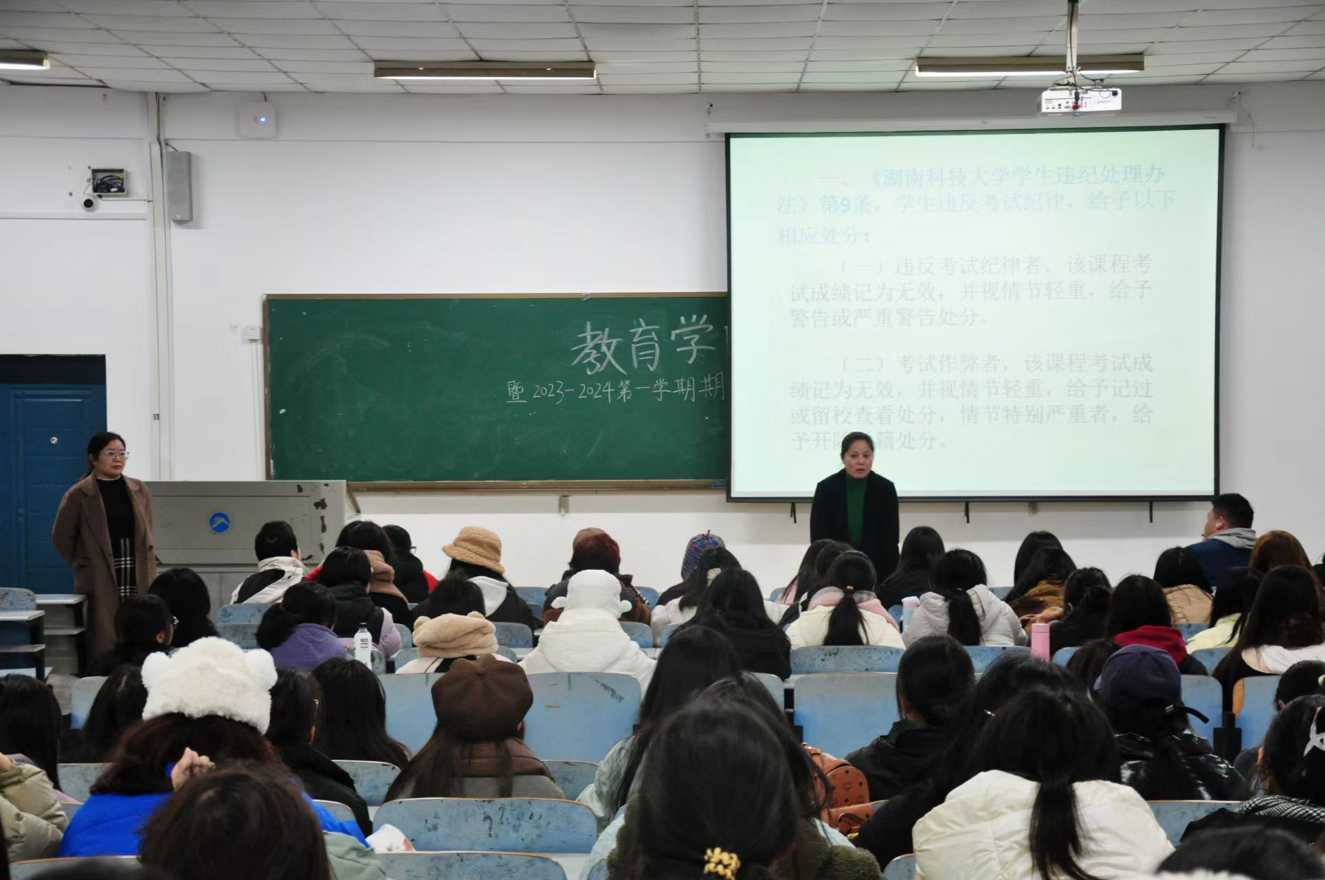临近期末,为提高安全意识,杜绝安全事故,营造文明新风,严肃考风考纪,12月19日至12月20日,学院召开年级大会暨2023-2024第一学期期末考试动员大会,学院党委副书记文红梅和年级辅导员主讲,各年级学生参加。