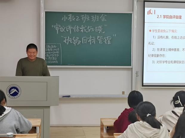 此次集中主题班会进一步夯实了评估工作基础,让同学们了解了新一轮本科教育教学审核评估相关内容,熟悉了学院和专业的发展状况,使大家将教育教学审核评估真正内化于心、外化于行,以更饱满的热情迎接审核评估工作。
