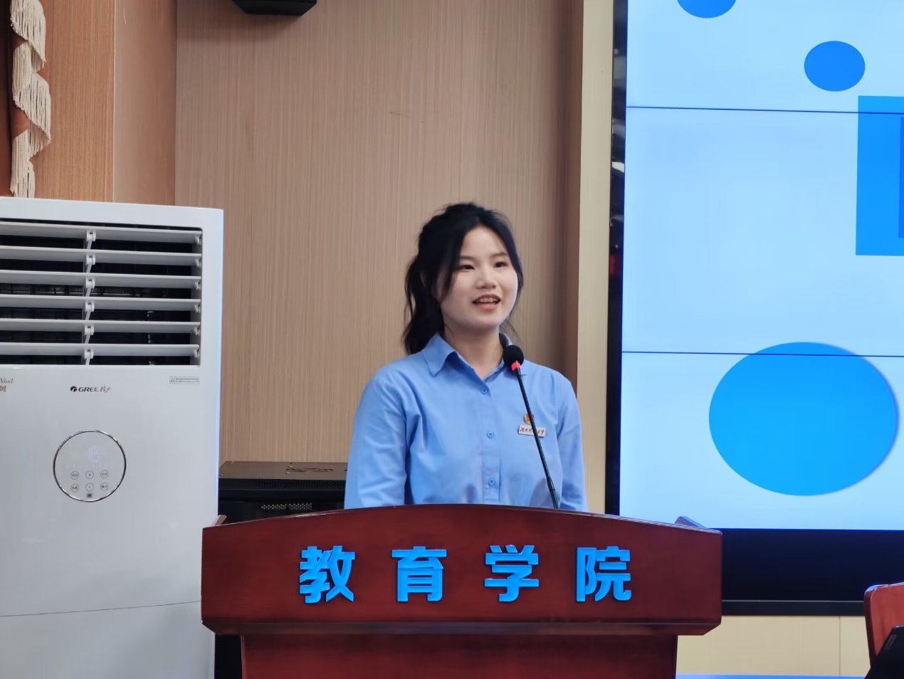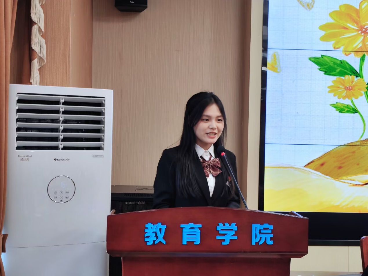 会终,刘婕对本次大会做总结发言。刘婕对第二十四届团委学生会干部们一直以来的辛勤付出表示衷心的感谢,对于他们这一年来的工作也给予了高度的肯定。她激动地表达了对新一届干部的祝贺,并寄语他们要奋楫争先,矢志前行,要积极学习万步炎教授不畏困难、乐于挑战的新时代海牛精神,并将其贯彻到工作当中去,一起携手再续教院辉煌!