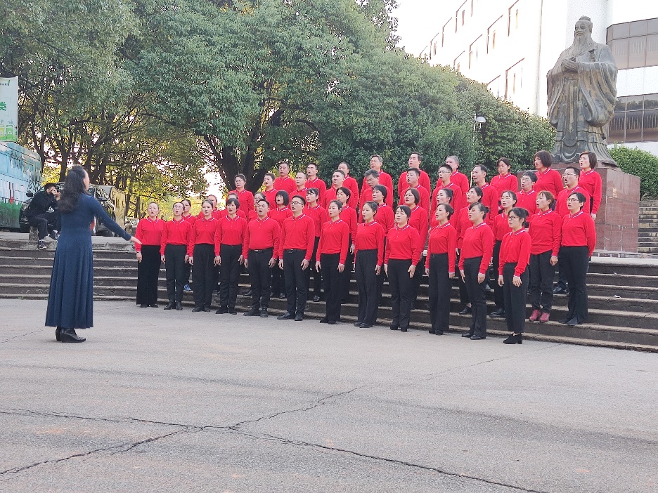 阳光不燥,微风正好。在冬日的暖阳下,bevictor伟德官网的老师们在第八教学楼前汇聚,他们身着清一色的红色上衣与黑色长裤,神采奕奕,在第八教学楼前开始了第一阶段的录制。随后,画面转至第二图书馆前,教师们排好队形,伴着音乐热情高歌,展现出了bevictor伟德官网的活力与光彩。第二阶段录制完成后,大家来到了树叶与光影荡漾的明湖,教师们沿着栏杆站定,迅速进入状态,拿出最好的面貌配合完成录制。