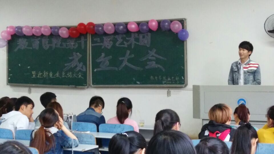 大会伊始,文艺部部长兼艺术团团长陈珊珊作为代表为第十二届艺术团的成立表示了热烈的祝贺并表达了自己的期望。“要让大一的团员有所收获,在这里要开心但不仅仅是玩玩而已,既然来到了艺术团,就要有一份责任心。”紧接着杨佳鑫、李涛老师、十六届团委学生会主席吴厚涛分别给这次成立大会提出希翼,送上祝福。