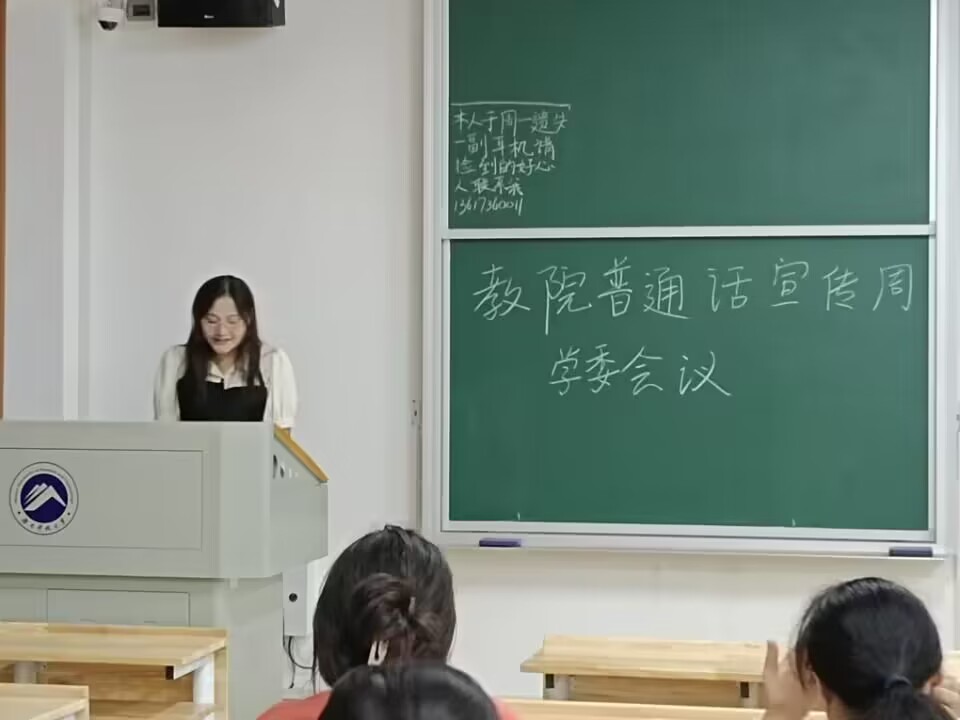 随着九月份普通话宣传周的到来,9月12日,在敏行楼C306,学院举行了21级,22级班级学委会议,意在号召各班学委带领班级成员积极推广普通话,使用普通话。普通话作为我们国家的通用语言,对我们有着举足轻重的意义。说好普通话在大学里变得极为重要。