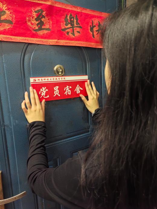文红梅强调一名党员就是一面旗帜,一间宿舍就是一座堡垒。挂牌意味着亮明身份,党员宿舍意味着标杆。她殷切嘱托广大学生党员要发挥先锋模范作用,在学风建设、宿舍文明、志愿服务中主动担当,激励其投身宿舍文化建设,增强党员的责任意识和服务意识,进一步强化党员的身份认同。
