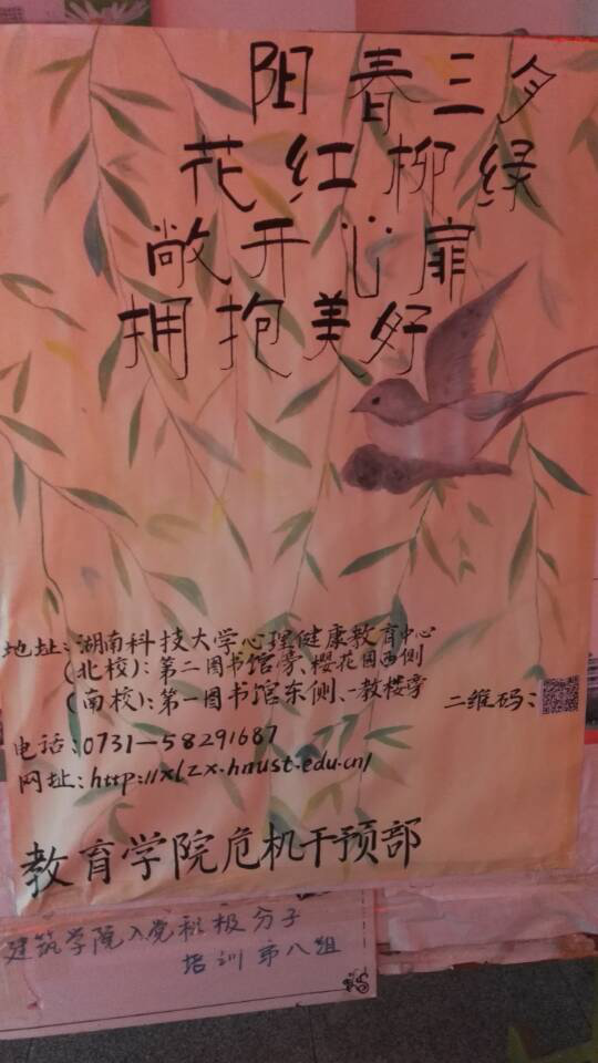 您所在的位置: 首页» 学生工作» 日常管理 阳春三月海报 时间:2017-03-17 00:00:00 bevictor伟德官网 - 源自英国始于1946 阳春三月 花红柳绿 敞开心扉 拥抱美好 学校心理中心网址:http://xlzx.hunst.edu.cn/ TOP