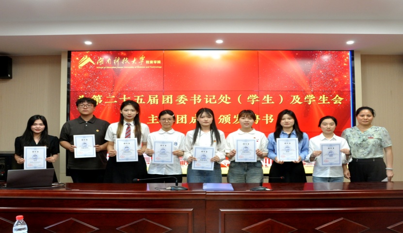 罗江林宣读第二十五届团委书记处(学生)及学生会主席团成员名单,文红梅颁发聘书,对第二十五届团委学生会干部们一直以来的辛勤付出表示衷心的感谢,高度肯定这一年来的工作。她强调学生干部在保持政治意识、大局意识、核心意识、看齐意识方面的重要作用,鼓励新一届干部们继承和发扬优良传统,守正创新,营造和谐的学习氛围。