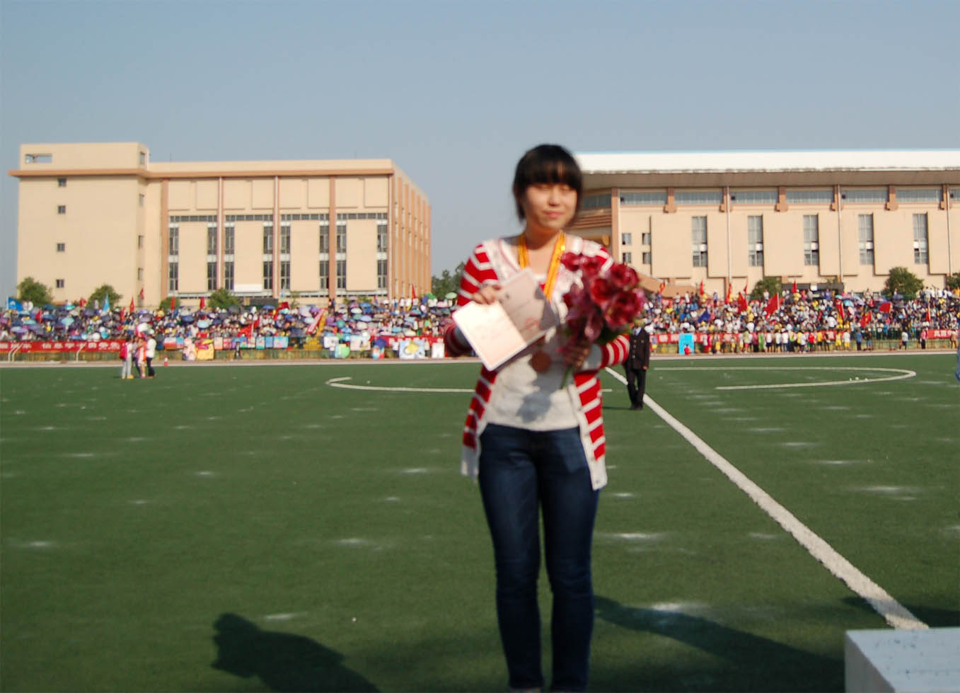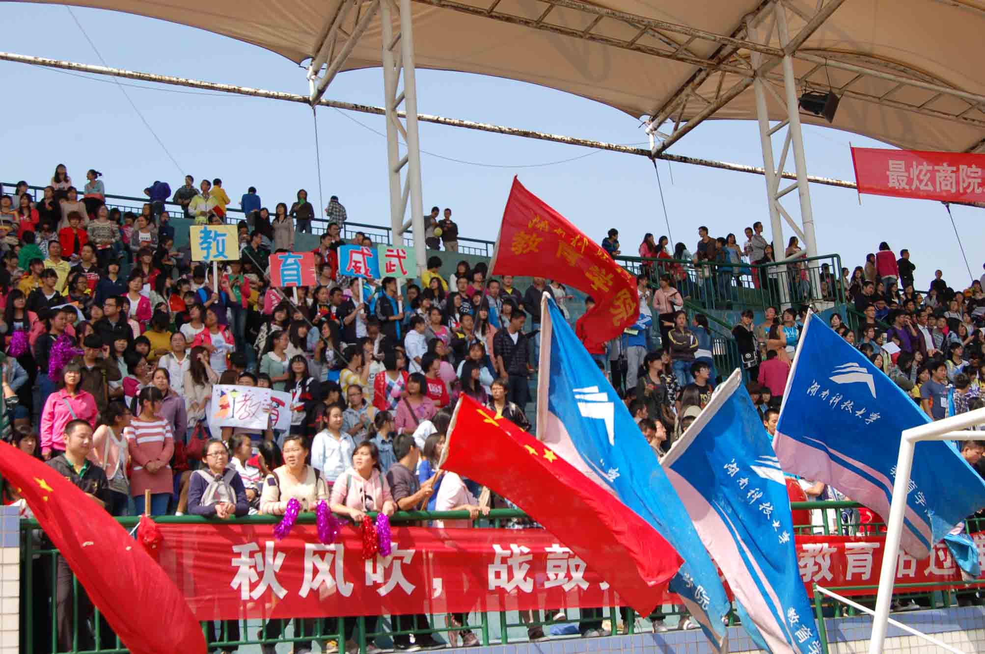 在鲜花方阵队和彩旗方阵队有序地退场中,此次开幕式圆满结束,同时也拉开了为期2天半的校运会赛事,更是让我们充满期待。