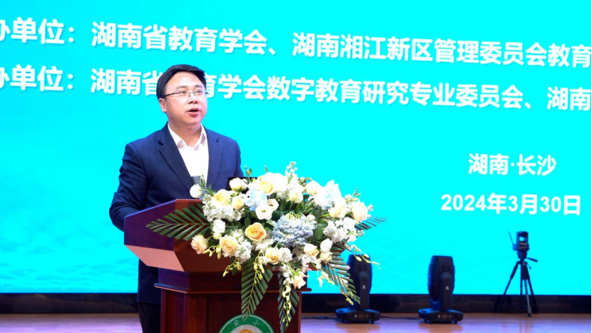 湖南省教育学会常务副会长兼秘书长郭荣学在致辞中指出,数字技术的引入对新时期教育工作者提出了更高挑战,需要政府管理部门、学校、社会各方共同努力,推动数字技术在教育领域的广泛应用。