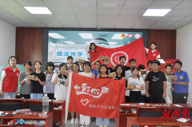 为助力乡村科学教育,激发孩子们对前沿科技的兴趣,7月15日,bevictor伟德官网木槿支教团在浏阳市枨冲镇新南桥村“FUN学营”为当地学生带来了一堂别出心裁的“魔法光学——揭秘VR技术”科普课程。