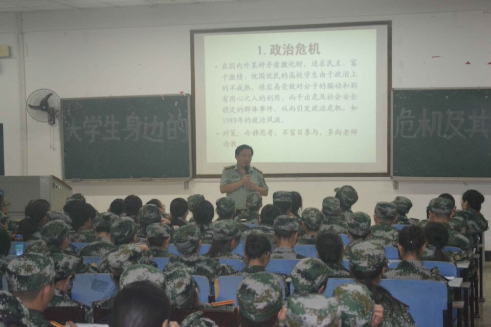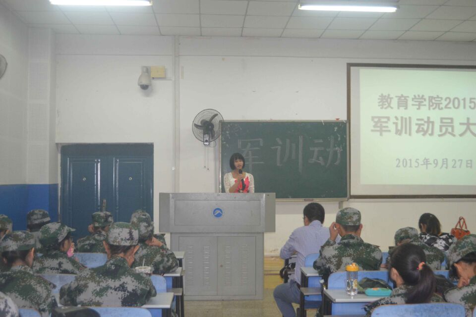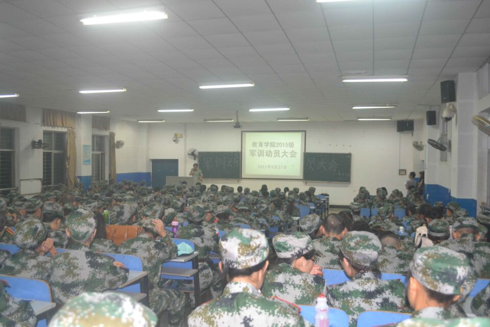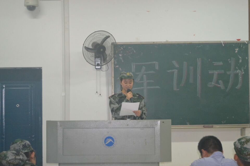 会始,由李涛老师进行预会热场,满当的教室围簇着迷彩服的15级新生群体,表论佳节贺词同时开始会议首项的齐唱国歌议程,尽显军人本色。紧接着的学生会主席张彤进行前期发言,希望新生全体能以军人作风自我要求,培植团体荣誉感,对于军训的严格教育形式有思想准备并且实现人格锻造。而后尹琼芳老师宣读军训细则,在综合统读各项考勤制度后,严格军容军纪标准,表示希望新生在特殊阶段有别样参与过程。