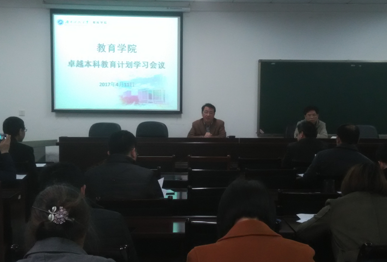 李海萍首先介绍了我校《关于实施卓越本科教育计划的意见》的出台背景和主要内容,尤其强调了我校实施卓越本科教育计划是服务经济社会发展的迫切要求,是高等教育“双一流”建设的客观需要,是学校奋进战略的核心内容。之后,李海萍重点解读了全面提升学校本科人才培养能力过程中确立学校办学定位和明确学校人才培养目标的主要举措。李海萍强调学院要按照学校总体精神,在办学定位上,以立德树人为根本任务,坚持社会主义办学方向,遵循高等教育规律尤其是要遵循高等教育内外部关系规律;要立足湖南,面向全国,放眼世界,传承与弘扬办学传统;要突出人才培养在学院办学中的中心地位,发挥科学研究、社会服务和文化传承创新对人才培养的支撑和促进作用;要突出本科教育在人才培养中的基础性地位,促进本科教育与研究生教育协调发展;要突出教学工作始终是学院的中心工作,以高水平人才培养推进特色鲜明高水平综合性大学建设进程,为国家战略和经济社会发展提供掌握高深知识、高新技术和高尚文化的卓越高层次人才。在人才培养目标上,李海萍认为,就我校办学传统和办学优势而言,培养卓越教师应当与培养卓越工程师一同作为我校人才培养的两个主要目标。