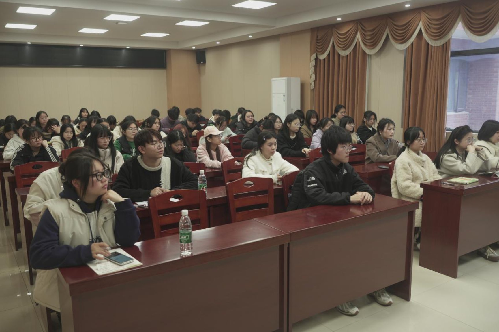 肖特强向同学们阐述了教育技术学专业广泛的应用前景。他表示,在求职过程中,同学们应综合考量兴趣、专长、地域等方面因素。大学生若想培养自身综合素质、展现独特风采,需具备积极求索的精神、勤奋的态度、强烈的责任心以及出色的学习能力。同时,他从创业、工作、考研三个维度,为在场学生提供了许多宝贵建议。