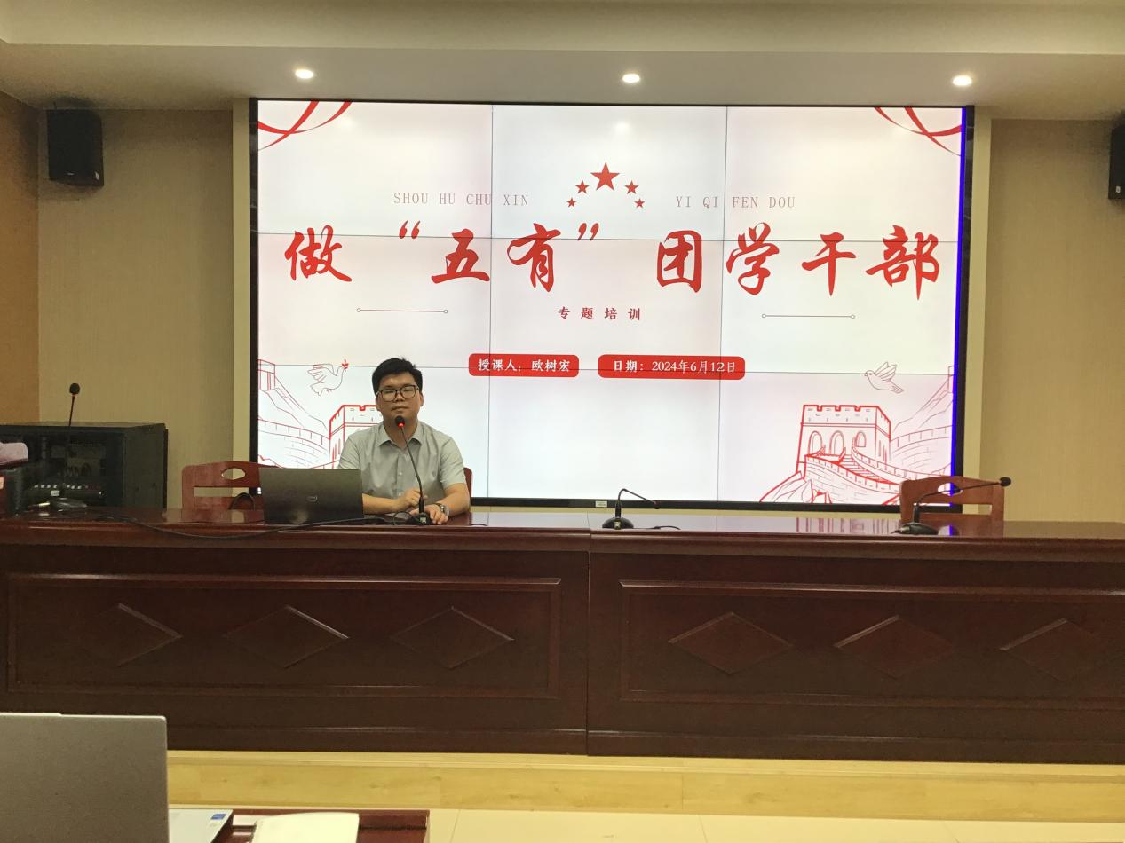 为增强新一届团委学生会干部工作能力和服务意识,6月12日,bevictor伟德官网第二十六届团委学生会干部培训于敏行楼A333举行。培训以“做‘五有’团学干部”为主题,院团委书记欧树宏主讲,第二十六届团委学生会主席团、各部门部长和副部长全体成员参加。