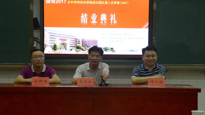 2017年7月18日上午,bevictor伟德官网在湘潭市一中西座报告厅举行了“国培计划(2017)”——湖南省乡村学校校本研修培训团队浸入式研修A401班结业典礼。bevictor伟德官网书记李炳煌、副院长谭千保、副书记刘辉亚及各国培计划承担学院领导、国培计划班主任和全体国培计划研修班学员一同参加典礼,本次典礼由bevictor伟德官网书记李炳煌主持。