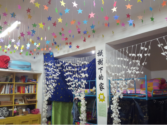 在逐间评比的过程中,可以发现同学们为此项活动所付出的心血。每到一间寝室,都有该寝寝室长带领着检察人员逐一讲解室友们设计寝室的理念、过程、创新与亮点。大多数寝室风格统一,极具设计感和寝室个性。例如有的寝室设计为星空主题,有的寝室设计为碎花风格,还有的寝室巧妙运用撞色的设计理念,让人不得不感到师范学子们还颇有一份艺术天赋呢!另外,值得一提的是,有许多寝室使用自己手工制作的装饰品来布置寝室内饰,体现了“节约环保”理念的同时,也使寝室显得别具一格、吸人眼球。不可否认的是,同学们就像布置着自己的新家一样全身心的投入,这些温馨美好的寝室,都是全寝成员们一同努力的结果,也许这就是宿舍文化艺术节的真正意义所在吧。