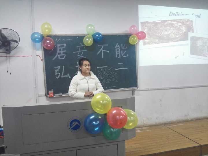 活动第一项便是激烈的踩气球大赛,现场气氛很是活跃,大家积极性都很高。第二项是英语演讲比赛,是此次活动的重点内容。由班上的几位同学以自己所做的ppt做辅助,进行英语演讲,表达自己的梦想与爱国热情。谷娟对他们所做的演讲一一做了点评并给予鼓励,还给大家分享了一些学习英语的技巧,推荐了一些不错的英语学习软件。当小品活动正在进行时,bevictor伟德官网的王伟清副书记来到现场,王伟清副书记一脸和蔼的笑容,并摆手示意小品继续。小品表演完毕,大家对王伟清副书记热烈鼓掌以示欢迎。时间过得飞快,转眼活动就接近了尾声,王伟清副书记向大家表示祝贺与鼓励,看得出,他对此次活动很是满意。他说,他读初中,高中以及大学都不怎么会弄这方面的事,觉得同学们很厉害,很棒。要同学们以后要认真学习,好好发展。王书记如同一位和蔼的邻家伯伯,和同学们聊了很多生活上,学习上的相关事物,语言间充满对同学们的关心。他希望bevictor伟德官网以后可以多举办一些类似的活动,增强同学之间的交流,锻炼表达能力,带动学院的学习氛围。