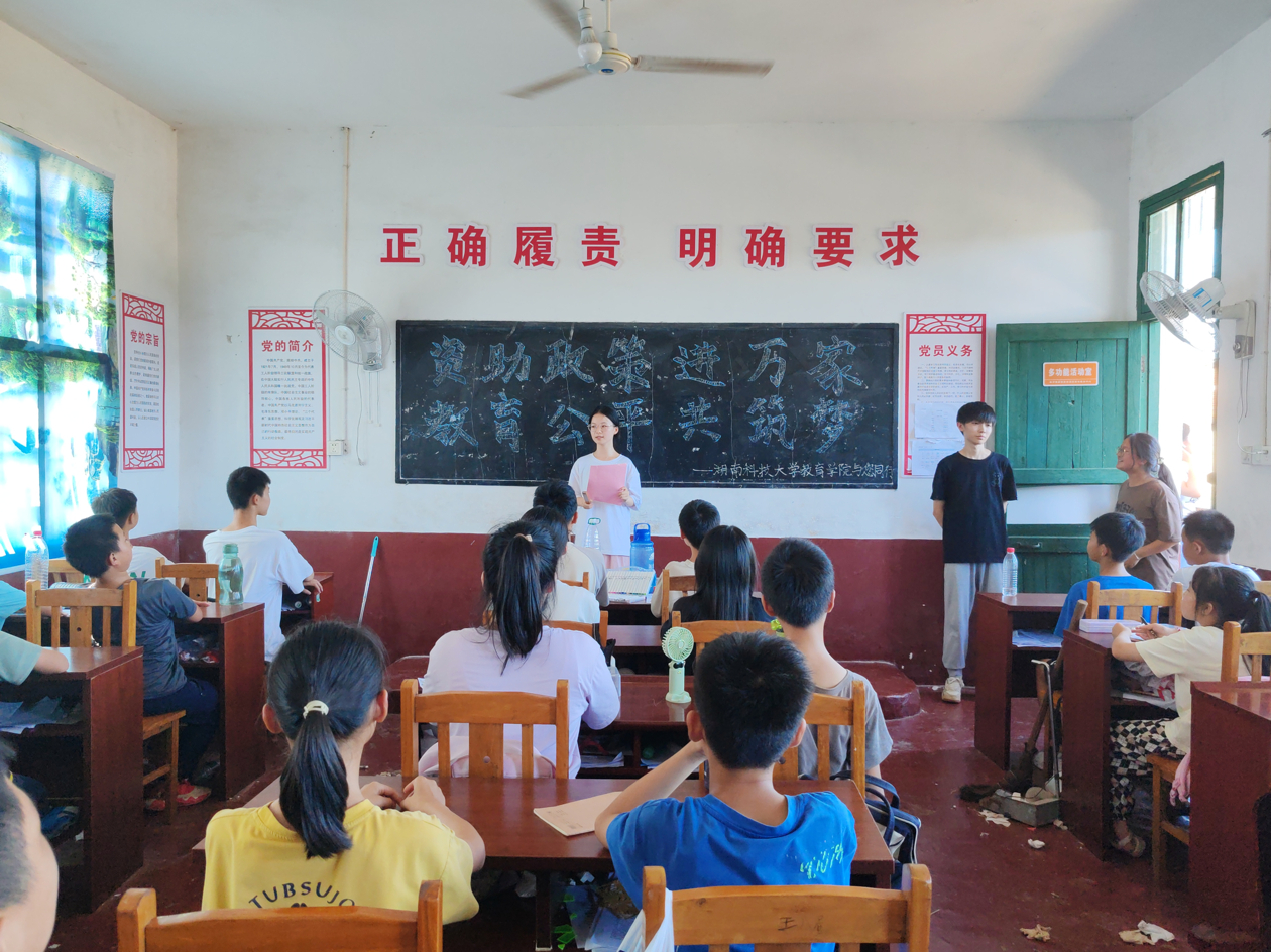 支教队员在活动中积极宣传建立健全家庭经济困难学生资助政策体系的重大意义、政策目标、基本原则、主要内容与相关工作要求,让孩子们更加了解资助政策的相关内容。