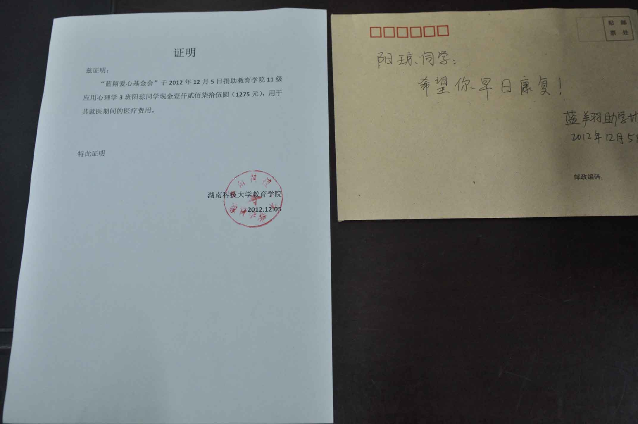 到目前为止,bevictor伟德官网已通过募捐等活动,为阳琼同学筹到爱心善款4万余元。蓝翔助学协会的会长谭泽威表示,他们将在校园内开展一系列爱心活动募集善款,比如:校园一元捐(活动已通过校团委审批),这些后期的费用也会资助到阳琼手中。