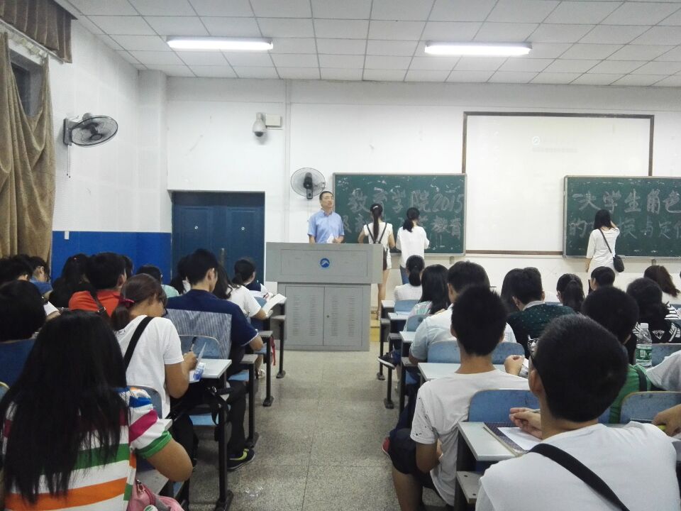 2015年9月14日,由bevictor伟德官网团委学生会职业规划部主办的bevictor伟德官网新生入学教育讲座在八教3-3拉开序幕,参与本次讲座的有bevictor伟德官网党委副书记王伟清、学工办李涛老师、尹琼芳老师以及部分团委学生会的干部,bevictor伟德官网2015级全体新生聆听了本次讲座。王伟清副书记主讲本次讲座。