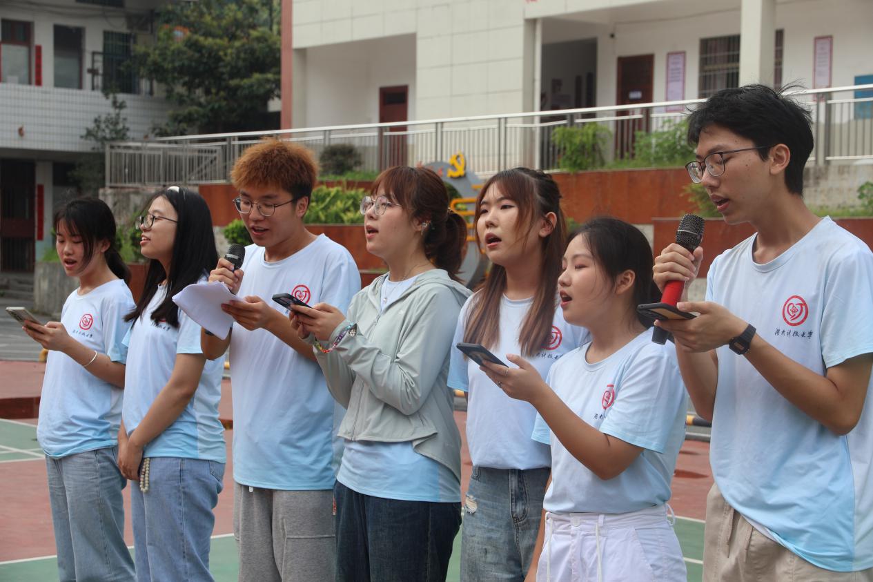 7月26日,文艺汇演在司马冲镇九年制学校展开,这是支教老师和这里的学生们最后一次集体站在一起,也是教员们送给孩子们的一次美好回忆。篮球场上一张张小板凳围成的圈便是舞台。在那儿,一分多钟跳完了好几个清晨苦练的舞蹈,唱完了整个星期都在大声练习的歌曲,演完了那几个看似简简单单的手势舞......最后的最后,“所有付出只因爱的力量”,这是支教老师合唱的歌曲《和你一样》中的一句歌词,也正如唱的那般,教员们见证着孩子们的成长而更加充满力量。汇演结束后,支教团队与同学们一起合影留念。