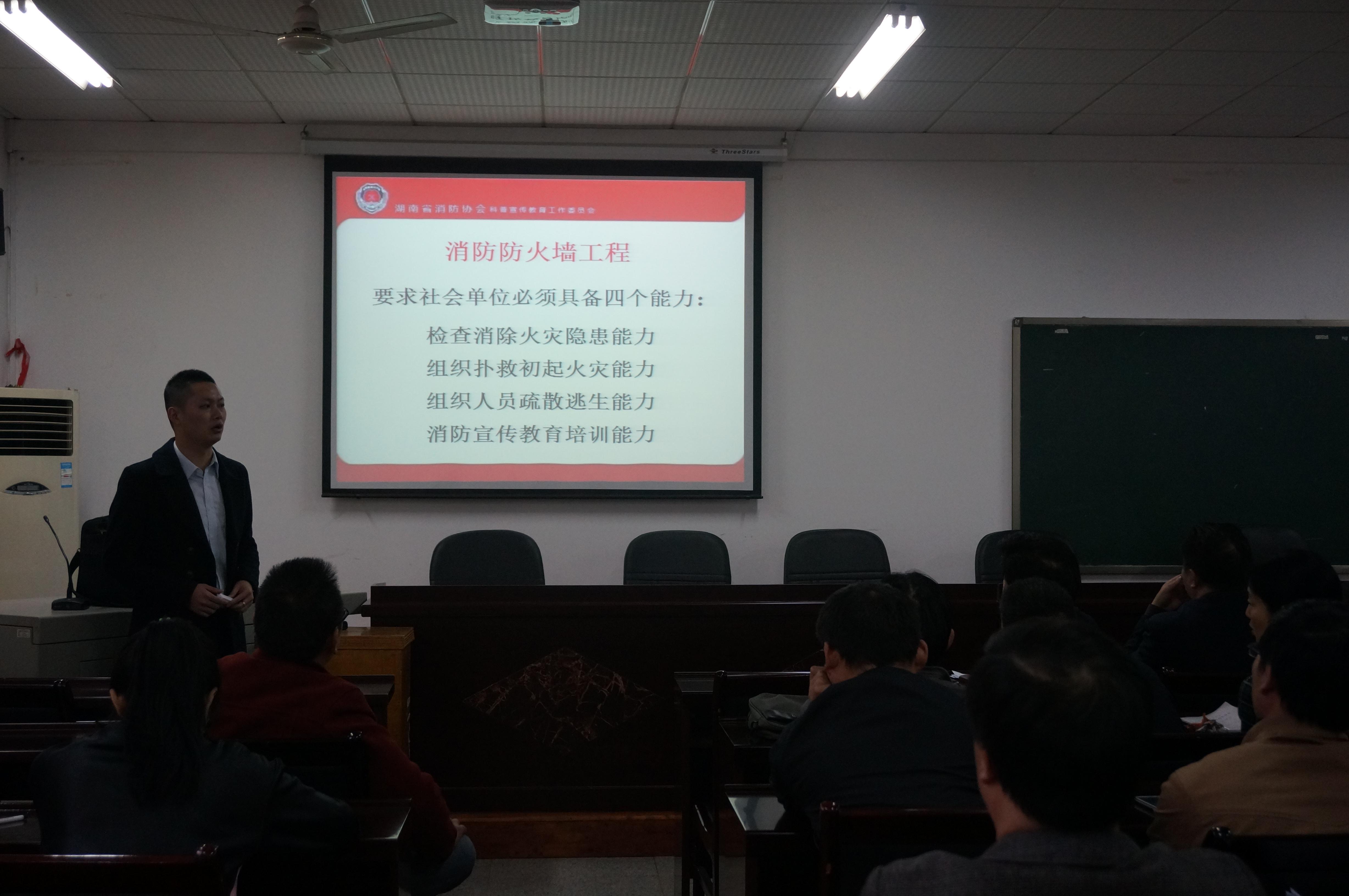 为了提高bevictor伟德官网师生的消防安全意识,11月18日,bevictor伟德官网邀请了湖南省消防协会科普宣传教育委员会的史明教官来bevictor伟德官网进行消防安全教育。15:00整,一场以“找火灾隐患,保家庭安全”为专题的消防安全讲座在第八教学楼408教室准时开讲。