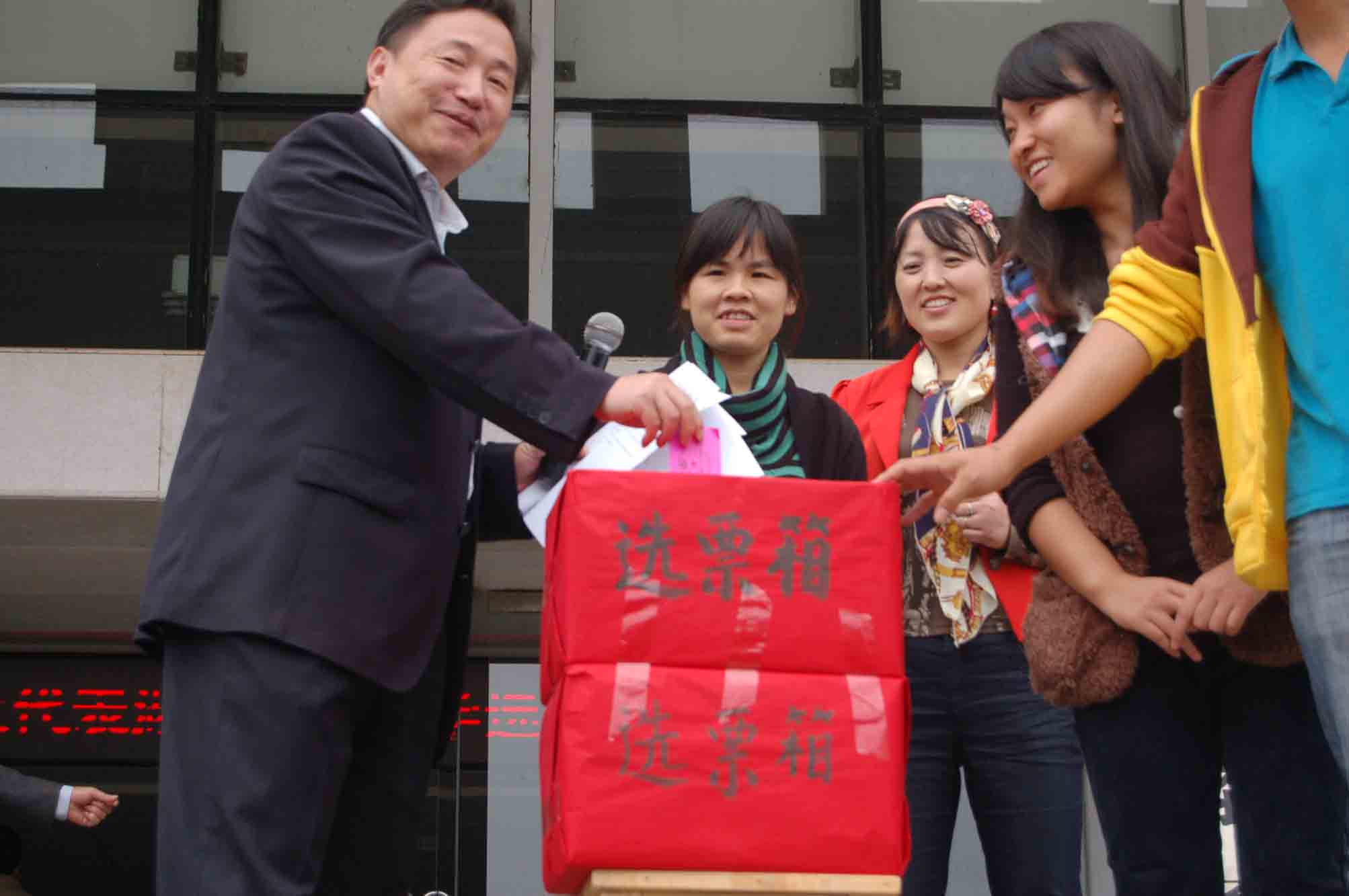 首先由谭书记发表了重要讲话,他强调要充分认识区人大代表选举工作的重大意义,正确行使选举权利,了解透彻我校区人大代表正式候选人的酝酿产生过程。两点二十分,经监票人检查完票箱,投票正式开始。