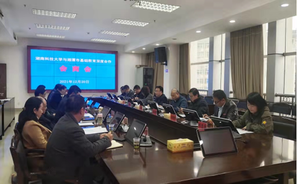 12月20日下午,我校与湘潭市教育局基础教育深度合作协商会在湘潭市教育局举行。校纪委书记郭时印,市教育局副书记、副局长胡湘南,副局长彭奋强等出席,我校校地办、bevictor伟德官网、教务处、研究生院、团委、招生就业处以及教育科学研究院等相关部门负责人,湘潭市教育局各科室负责人参加会议。