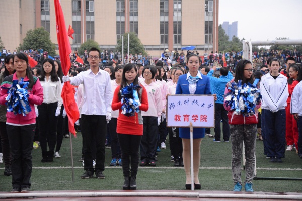 开幕式伊始,整齐的国旗班正步入场,铿锵的步伐走过主席台,迈向国旗台。首先,主持人介绍莅临开幕式各位领导,老师等。接着,运动员及体育学院裁判员组成代表团入场,他们挥舞的彩旗飘扬,振奋人心。接下来各个学院组成的代表团陆续入场。能源与安全工程学院身着红色队服,秉承敢闯敢拼,青春似火,超越自我的能源精神,昂首挺胸走过主席台;接下来是亮眼的土木学院特色的军训服;蓝红色队服的机电工程学院、红白服装的信息与电气工程学院、亮眼的黄蓝队服的化学化工学院、象征内涵深沉的深蓝色队服的数学学院、火红运动服的生命科学学院、黑白相间运动服的建筑物城乡规划学院、外国语学院等也依次入场。别致的粉色上衣,高举“友谊”“快乐”“健康”牌子的bevictor伟德官网踏着坚定的步伐走过主席台 。商学院、艺术学院、管理学院、法学院、潇湘学院、研究生学院、正装入场的图书馆分工会代表队、机关一分工会、二分工会、三分工会、后勤代表队、附校分工会等各个代表队依次入场。