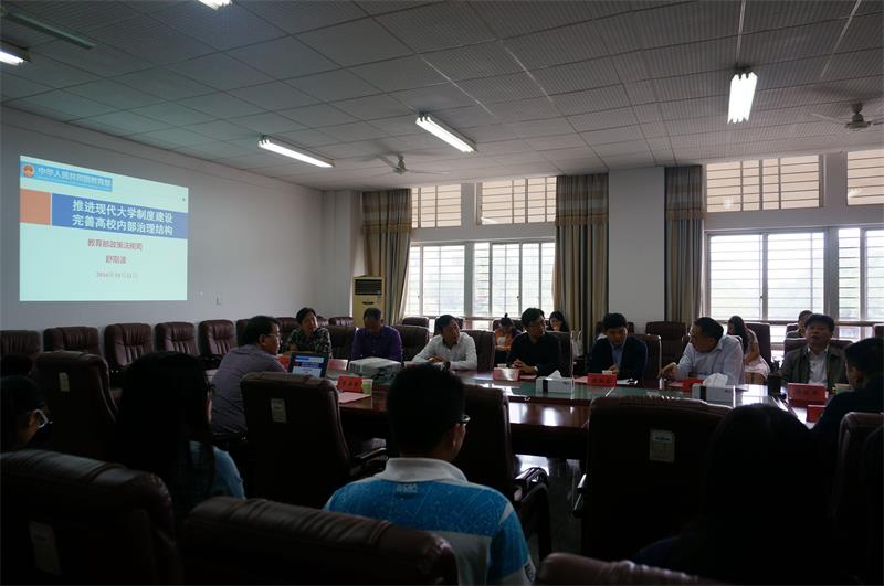 廖湘岳首先代表学校欢迎舒刚波处长莅临我校指导工作,并简要介绍了学校的基本情况。他表示,在今后的工作中,希望教育部政策法规司能够加强对我校特别是对bevictor伟德官网的业务指导,在学术上和实践中加强联系。