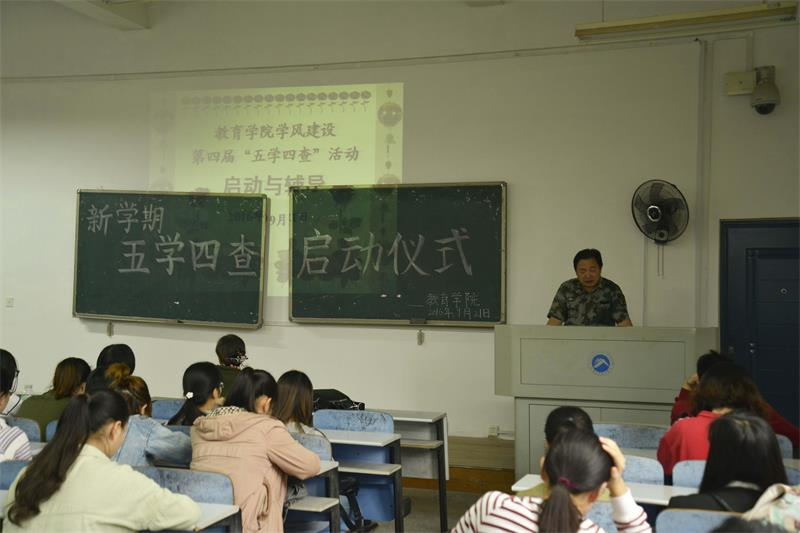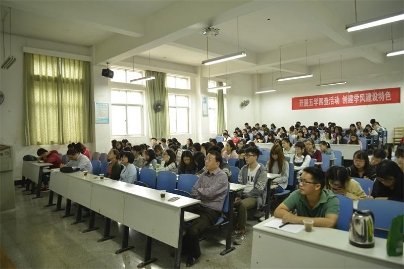 为了抵制不良文化的负面影响,营造良好的学习氛围,提高学风建设的实效性,创造学风建设特色,创建良好的特色文化,bevictor伟德官网对学风建设进行了多年的探索,形成了“五学四查”的理念和做法。为了推广新做法,2016年10月11日15:00在第八教学楼1―4开展新学期“五学四查”会议,莅临本次大会的嘉宾有bevictor伟德官网院长李海萍教授、院党委副书记王伟清教授、学工办辅导员尹琼芳老师、李涛老师、练素华老师以及教务办主任王方老师,还有14、15级各班班长、团支书、危机信息员和学习委员。