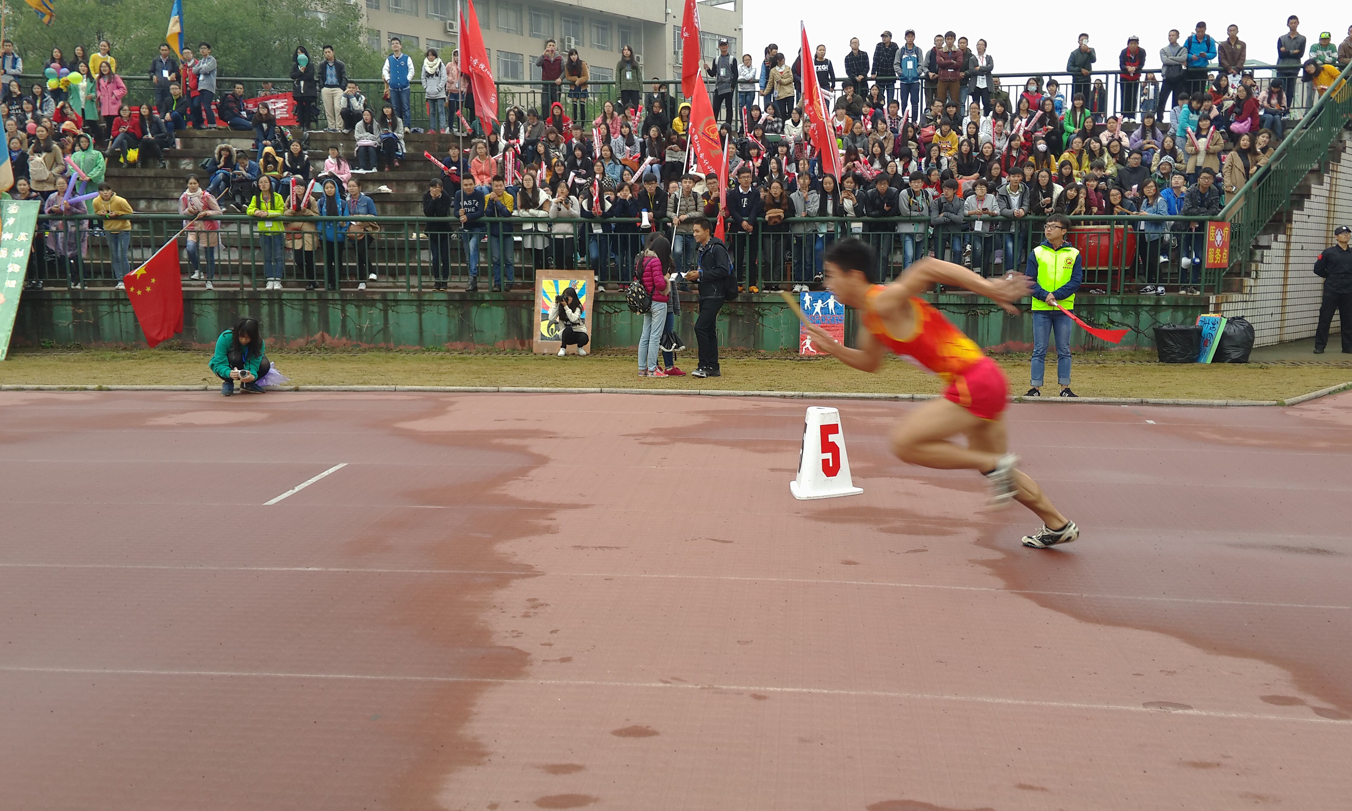 田径赛场上的运动员们,一个个如矫兔般飞离起点,像利箭般冲向终点。运动场上他们的飒爽英姿,跑道上他们的拼搏身影,无不引得在场观众激动不已。三级跳远上的同学,带着教院的期望,怀揣着超越自己的梦想,快速助跑,即时踏板,迈开矫健步伐,腾空落地,以一条美丽的弧线稳落在沙坑上。在我们的采访中,来自bevictor伟德官网小学教育专业的三级跳远选手林婉琼说“三级跳远是一项很有技术性的比赛,我的成绩不是很理想,但我能超越自己,我觉得很高兴,关键是重在参与”。该选手向我们传递了友谊第一,比赛第二的原则,尽管没取到好成绩,但观众却不会因此而沮丧。“教院不红,天理难容”“大教育,加油”这此起彼伏的加油声无疑给成绩不理想的选手一个安慰,给将要比赛的选手一个安心丸。