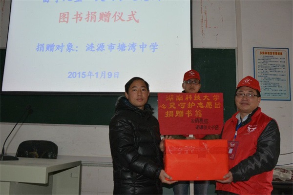 一路伴着朝阳前行,志愿者们于10:00到达塘湾中学,在与学校老师进行了交流后,进行了捐赠仪式,将在校募集到的价值约3000元的200本书籍捐赠给学校,希望可以帮助孩子们更好地学习知识。