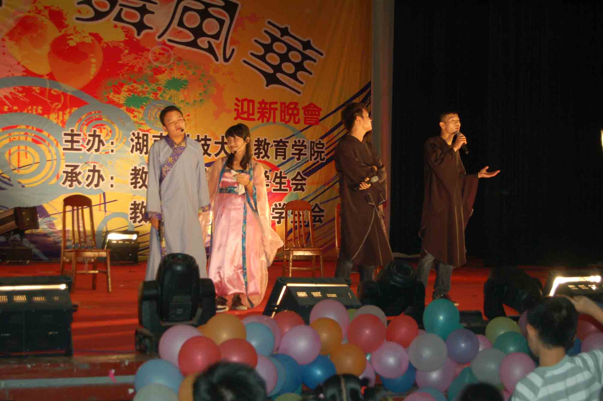 一首动感十足、性感火辣的爵士舞瞬间点燃了现场观众的热情,由此拉开了晚会的序幕。脍炙人口的歌曲串烧、帅气十足的T台走秀、优雅古典的红扇袖舞等节目使得台下尖叫声连连;在一段静谧柔和的古筝曲中,一幅清新自然的水墨画便水到渠成,研究生们为大家展现的一曲一画,其才能可谓令人叹为观止;“哎呦,同为女人,我懂你的!”,细嗲的声音,扭捏的步伐,刘烁将其饰演的刘明娘娘腔这一角色展现得淋漓尽致,幽默搞笑的话剧《皇帝与刺客》,以其诙谐逗趣的语言,夸张惊人的动作,雷人大胆的剧情,令观众们捧腹大笑,掌声尖叫声不断······