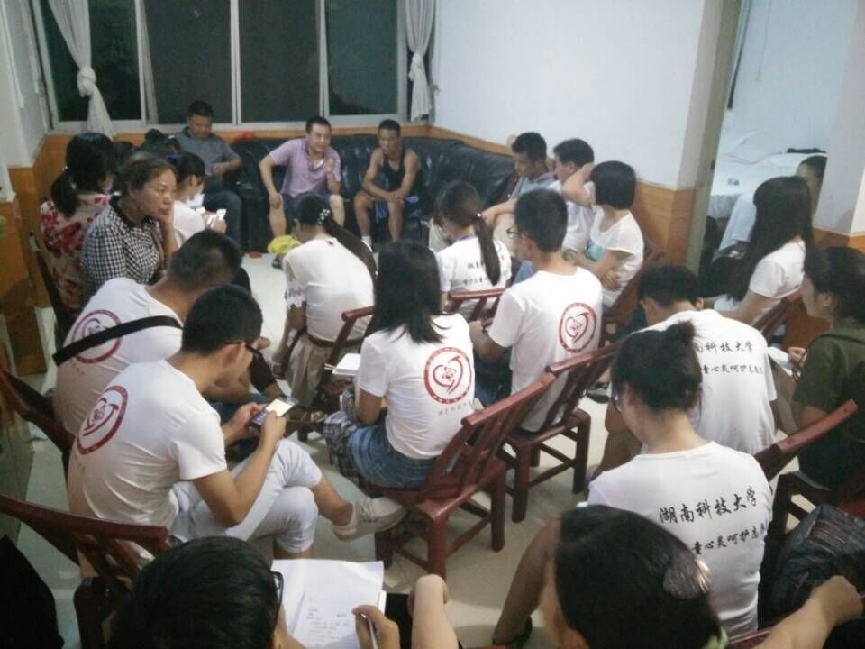 2015年7月17日晚上22:00,湘潭火车站,一支整齐的队伍带着行李在焦急的等待中蓄势待发。次日早上8:00到达张家界。紧接着又从张家界出发去永顺,到达永顺后又从永顺站出发,经历了多次转站后终于于12:40到达首车镇的双湖村。这支队伍就是由bevictor伟德官网的王伟清副书记带领的青年志愿者们所组成的“三下乡”志愿队。经历了短暂的休息和熟悉环境后,王伟清副书记开始进行后几天的工作布置,并与志愿者们进行交流。
