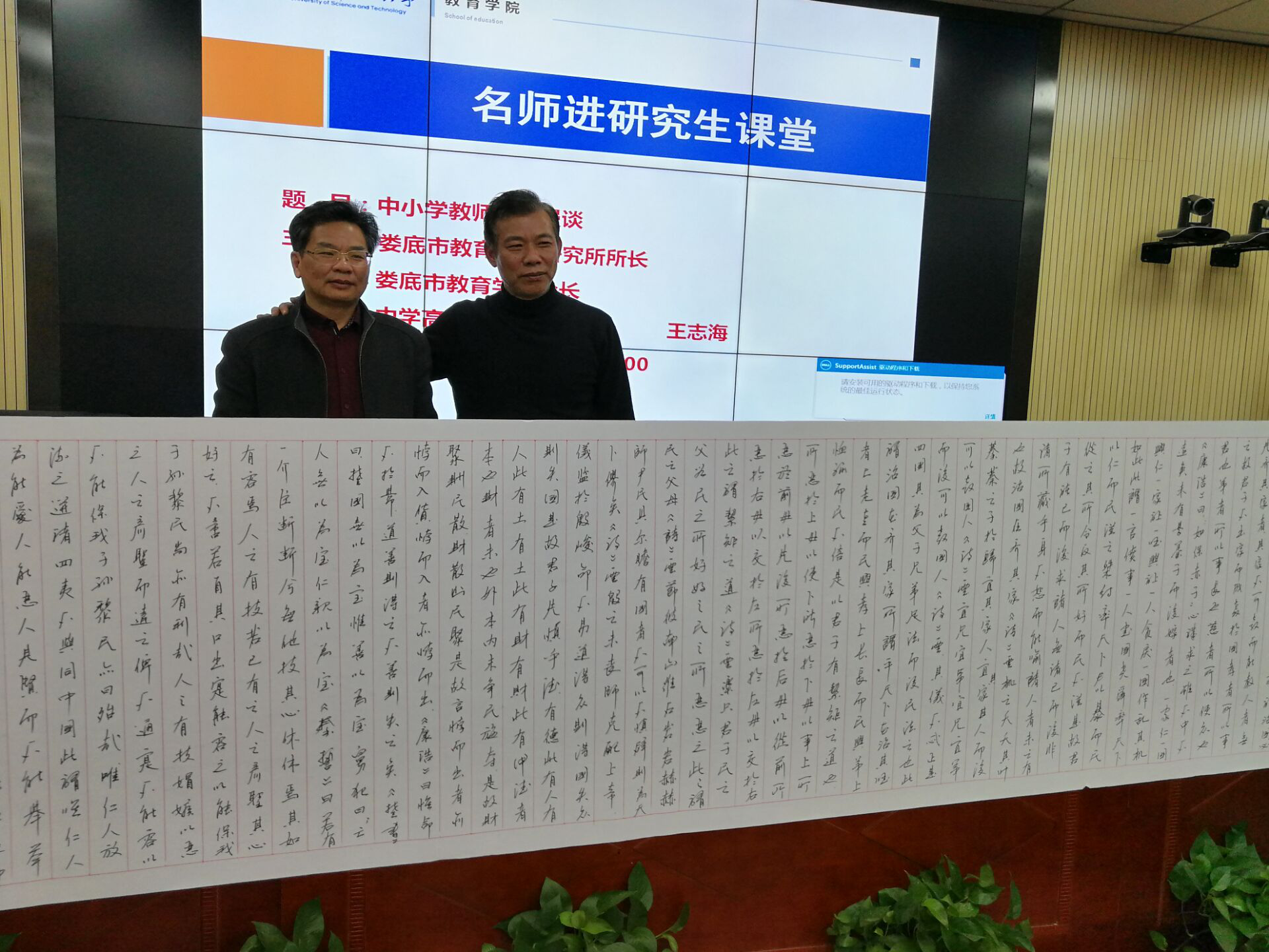 王志海所长结合自己从教30年的教学教研以及管理经历,从人的生命价值引出话题。他表示,人生的时间无法操控,但个人发展的空间差异体现了人与人之间的差别,要成为一名有思想、有觉悟、有素养的人民教师,个人定力起着关键作用,教师的个人定力又决定了教师的个人素养。王志海将个人素养分为科学素养与艺术素养,科学素养包括良好的文化素质、较强的教学科研能力、较高的职业道德修养和敏锐的时代意识;艺术素养更多的注重自身音、体、美方面的进步。王志海还强调做为一名教师应保持自身读书与学习的能力,时刻贯彻终身学习的理念。“他山之石,可以攻玉”在学习中,要学会借鉴别人的经验来补充自己,不仅要抓重点,讲究方法,还要学习曾国藩湘军的韧性,屡败屡战。这样才能不断提高自身的教师素养,成为一名优秀的人民教师。 王志海所长还针对当下教育硕士就业需求提出了宝贵建议。他表示,做为一名教育事业求职者,一定要重视自己的教学技能,书写能力、板书设计和表达能力都是学校考核求职者的重要指标。