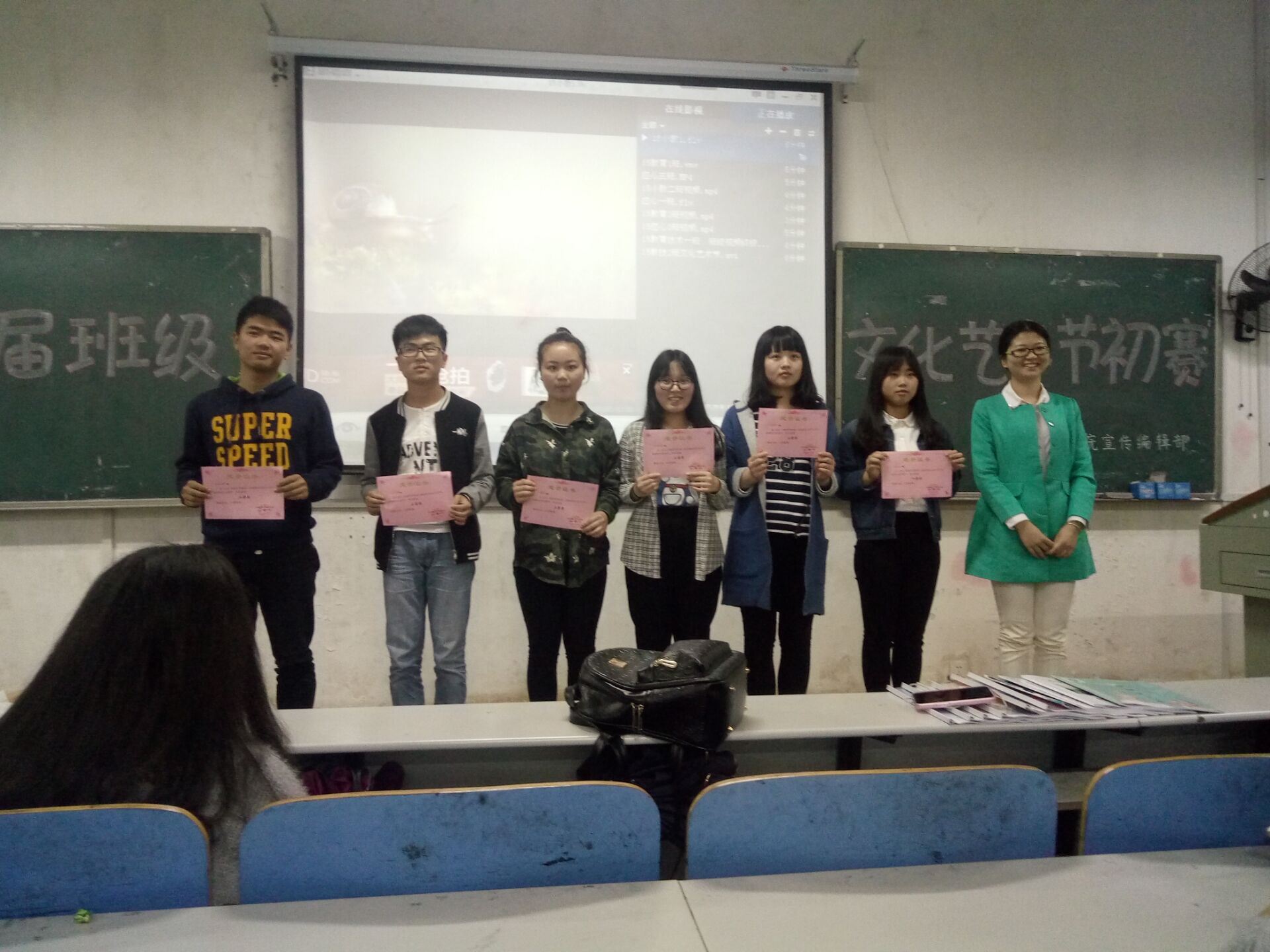 2016年4月26日14:00,bevictor伟德官网第二届班级文化艺术节初赛之班级特**评比暨颁奖仪式在八教1-6正式举行。出席初赛的嘉宾有bevictor伟德官网学工办老师李涛,bevictor伟德官网团委学生会第一副书记徐春菊。各班围绕着“畅想青春主旋律,展现活力新班级”这一主题,通过在视频中展示班级合照,班级活动剪辑等,把班级最美的一面展现出来。