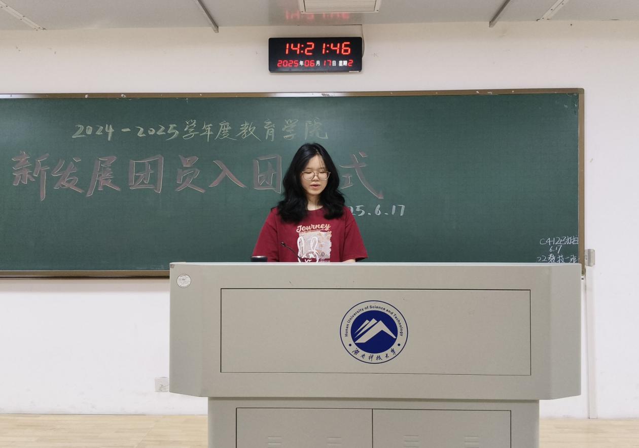 6月17日,bevictor伟德官网在敏行楼C412举办2024-2025学年新发展团员入团仪式。bevictor伟德官网团委书记欧树宏,学院共青团员参加本次仪式。仪式由张荣颖主持。